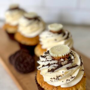 vanilla cupcake with chocolate buttercream, topped with potato chips for that sweet and salty twist that we all love!!!