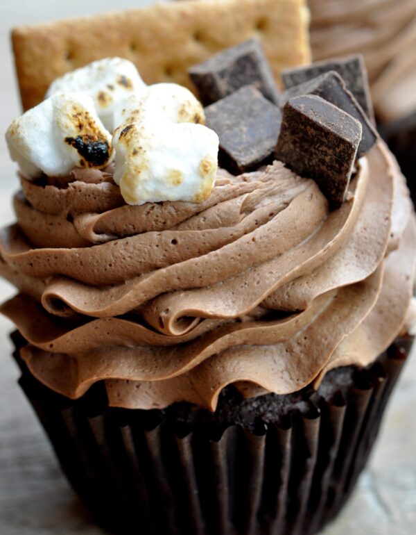 chocolate cake with a marshmallow center, topped with buttercream, graham cracker crumbs and toasted marshmallows. Jumbo size only